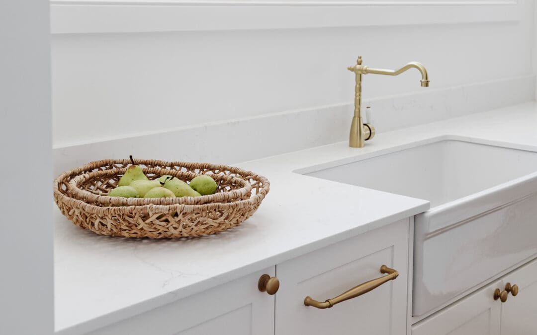 A butler sink, often referred to as a farmhouse sink or an apron sink, is a large, deep sink that is typically mounted beneath a countertop, extending beyond the cabinetry. The cabinet below is reduced in height and provides a shelf for the sink to sit on. Butler sinks are heavy so require proper cabinetry support. It is recommended that the benchtop material is stone, however it can be achieved with laminate but does require modifications to the design to ensure the sink sits above the height of the benchtop.