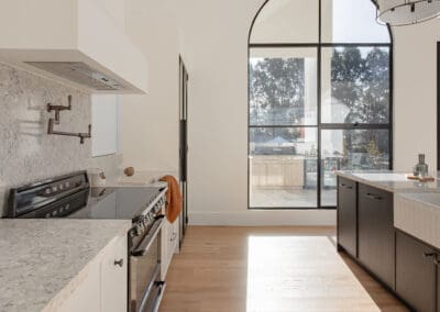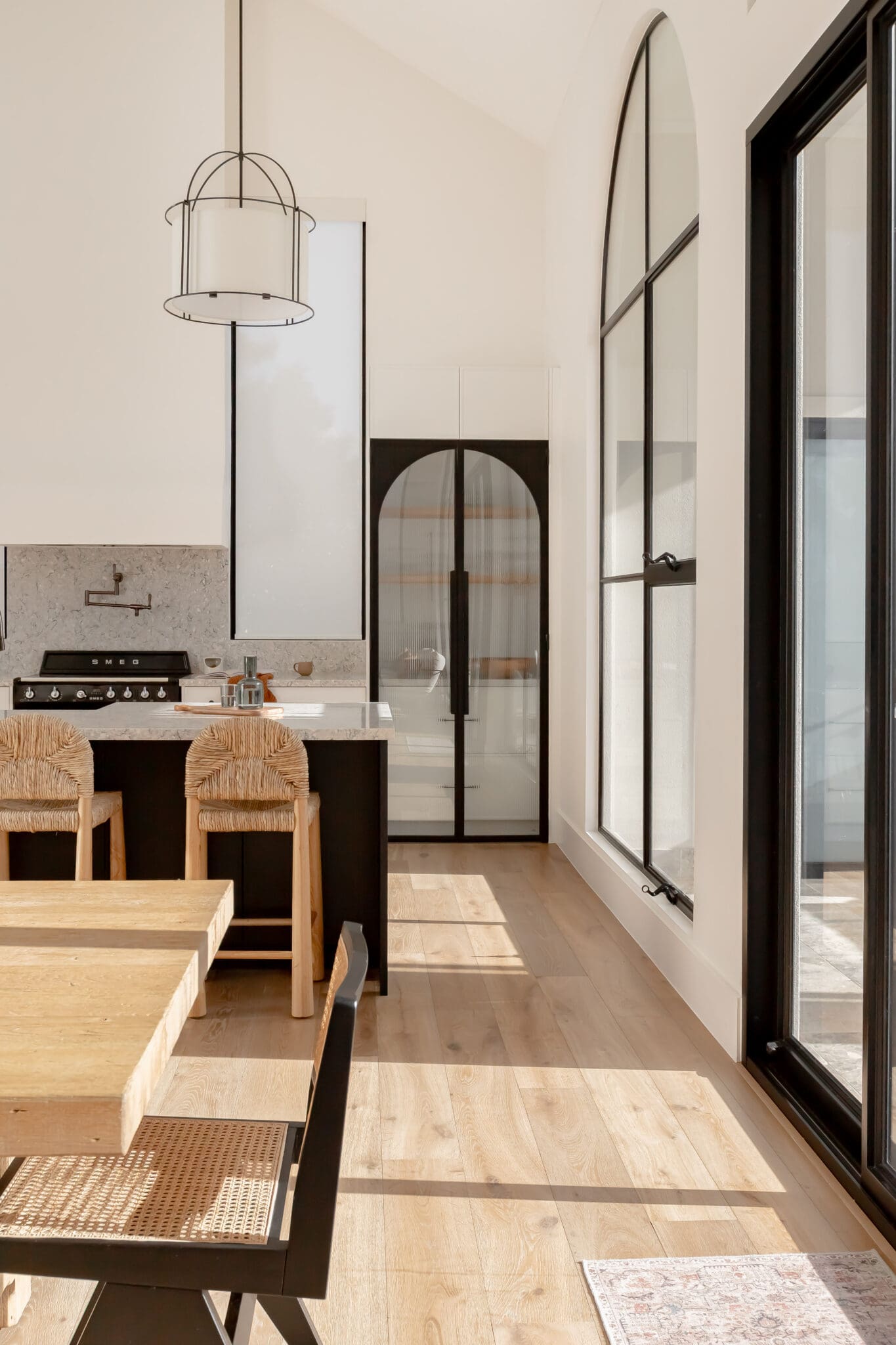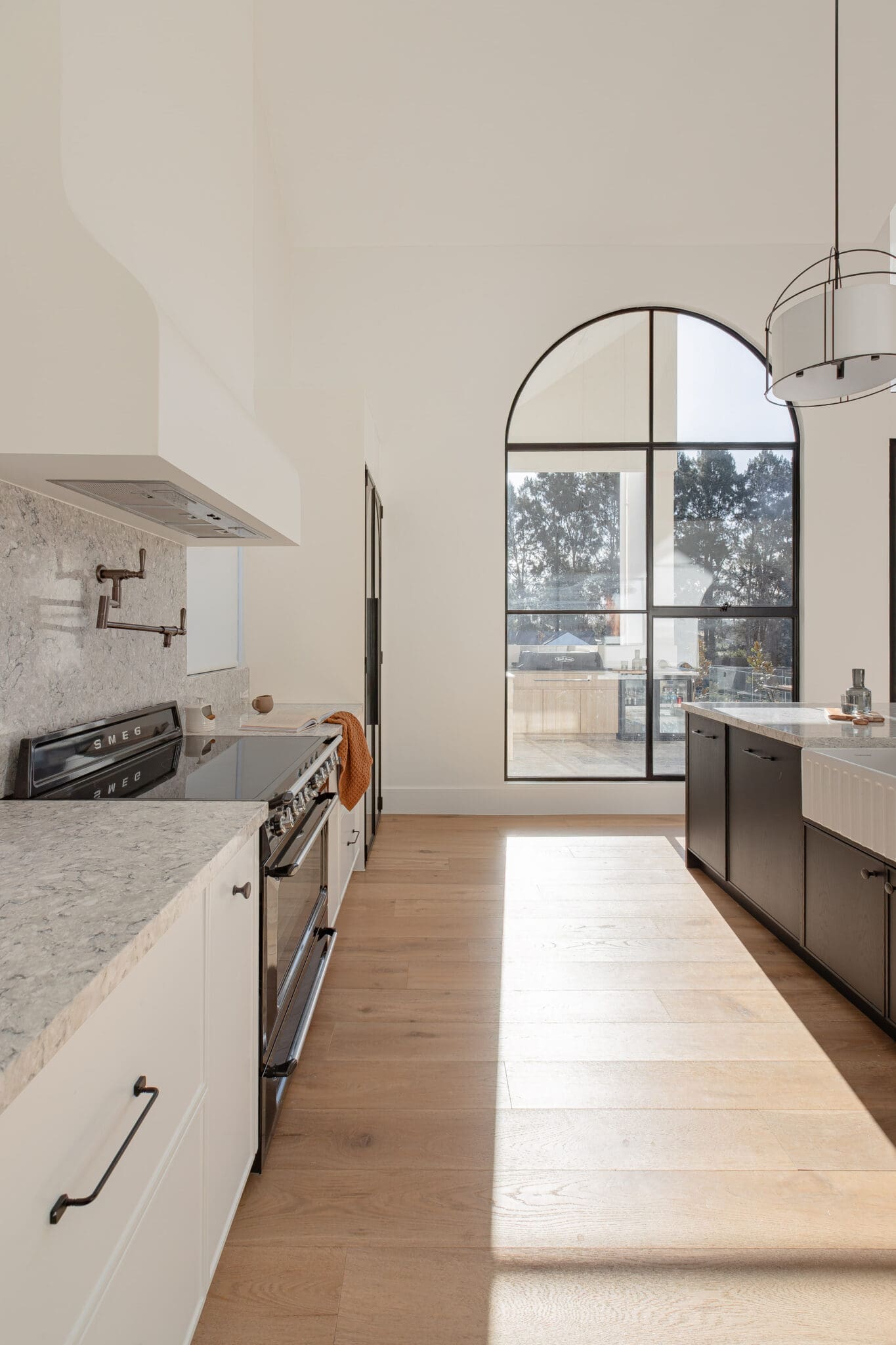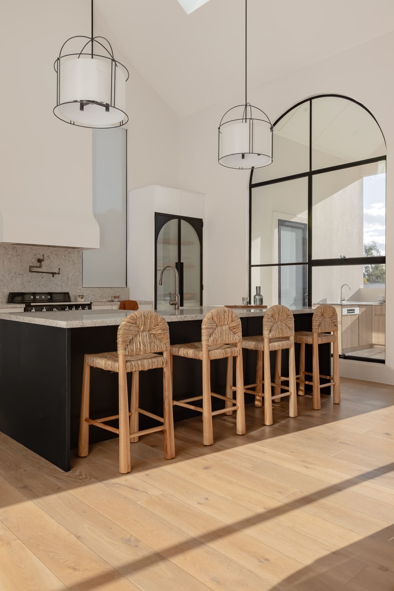 In the Elderslie Project, Built to Desire delivered a custom kitchen and laundry that feel both graceful and grounded. Framed by arched steel windows and soaring ceilings, the space is shaped by contrast, light and dark, polished and matte, refined and natural.